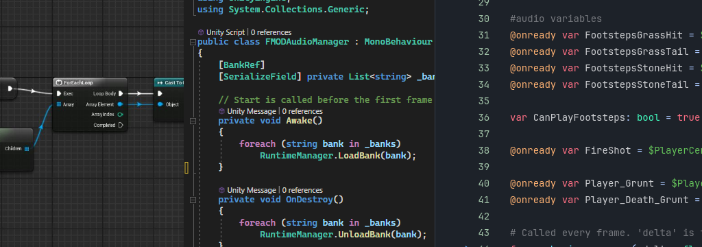 I can work with C#, C++, and GDScript to integrate audio into gameplay. I know how to trigger audio through code, expose parameters, and work alongside programmers without breaking their setup. I adapt to existing codebases and keep things clean and functional.